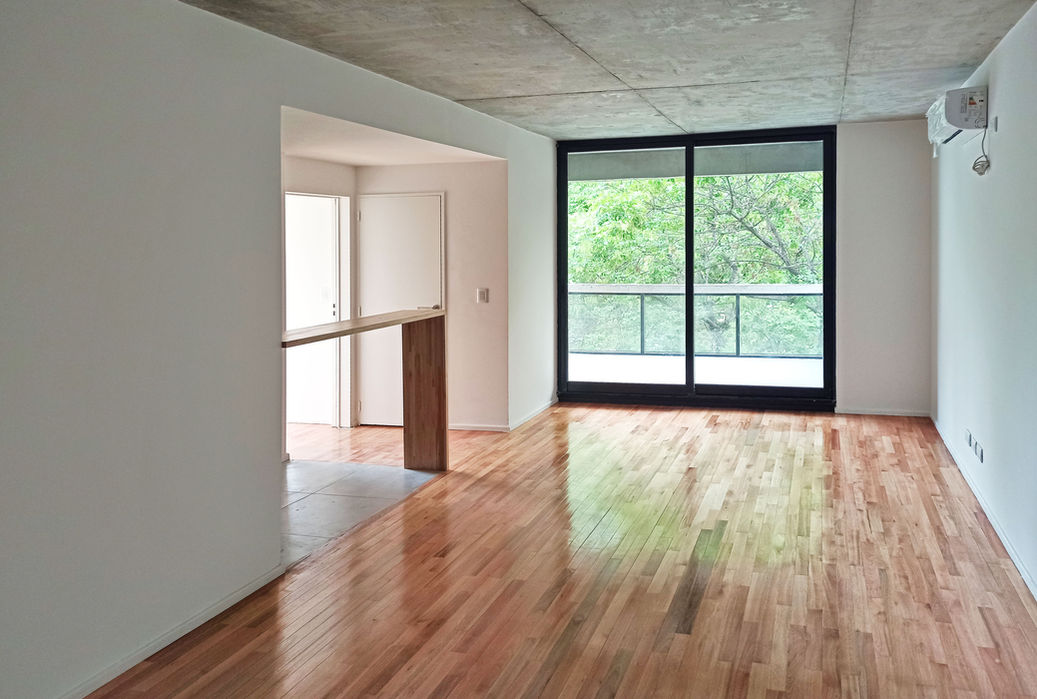 Amplio y luminoso departamento, con excelente balcón con parrilla propia. Espacio flexible, ideal para oficina o estudio.